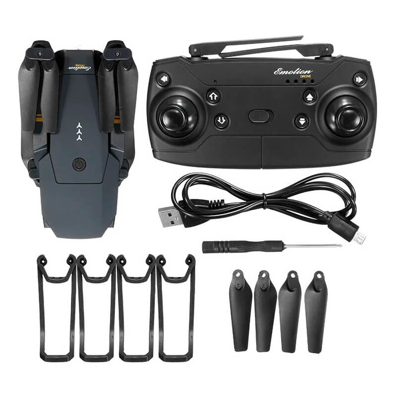 аккумулятор, запасные пропеллеры(2 шт), USB-зарядное устройство, инструкция, отвертка